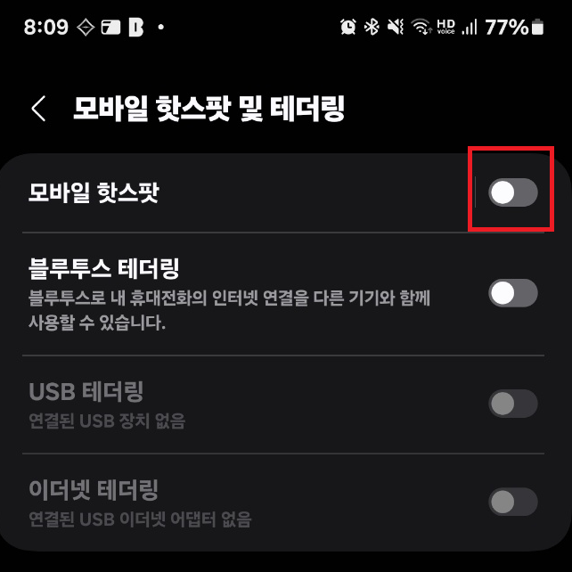 모바일 핫스팟 활성