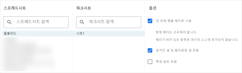 정상적으로 데이터소스가 등록 되었다면, 추가한 구글시트 데이터가 리스트에 나옵니다.