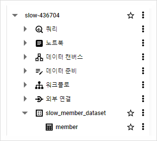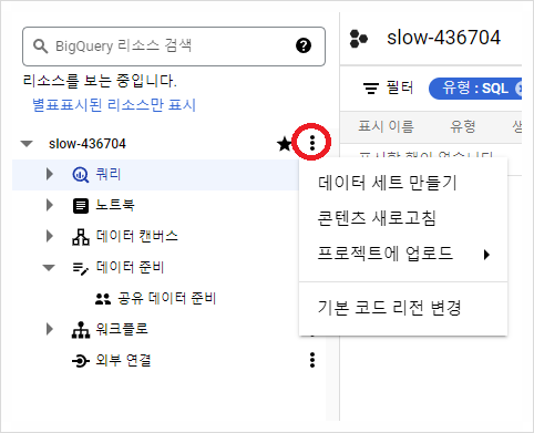 생성한 프로젝트 에서 "데이터 세트 만들기" 합니다.