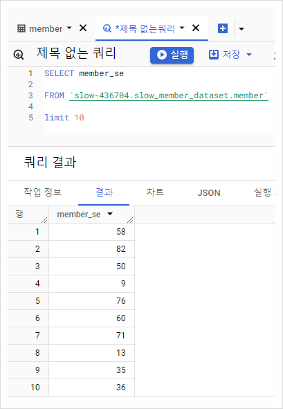 빅쿼리 준비가 끝났습니다. 테스트 진행.