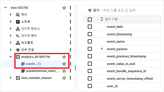 하루가 지나면 빅쿼리와 GA4가 연결된 모습을 확인 할 수 있습니다.