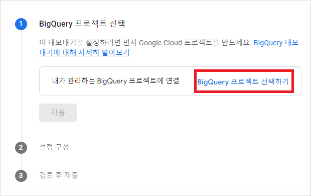 연결창이 뜨면 "BigQuery 프로젝트" 클릭