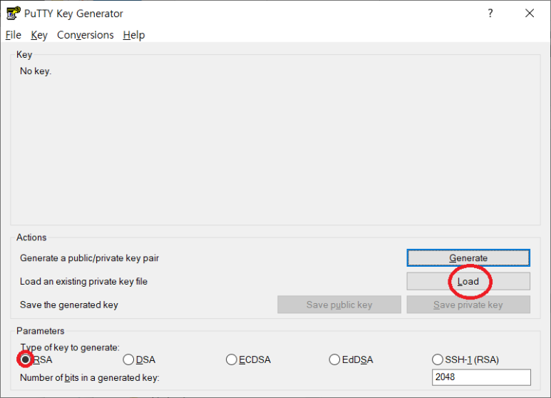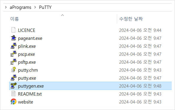 PuTTY 설치 경로로 이동하여 puttygen.exe 실행