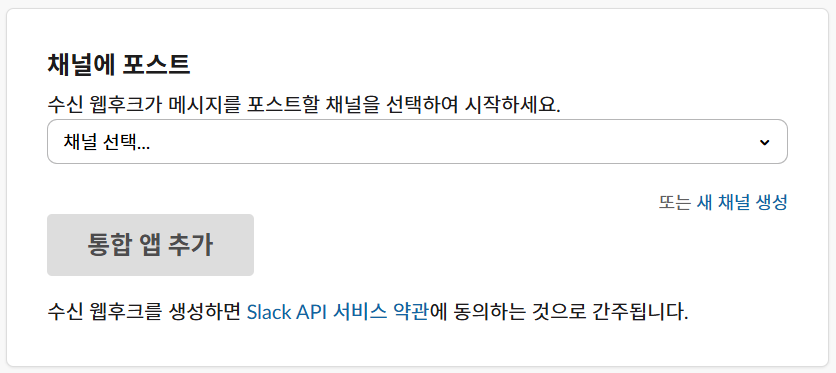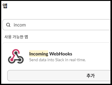 Incoming WebHooks 추가합니다.
