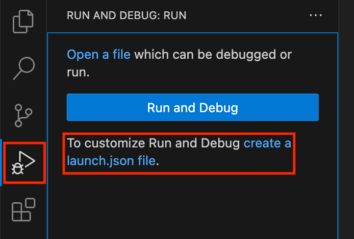 VSCode 좌측메뉴에서 Run and Debug(세모와 벌레 모양) 누르시고 생성합니다.