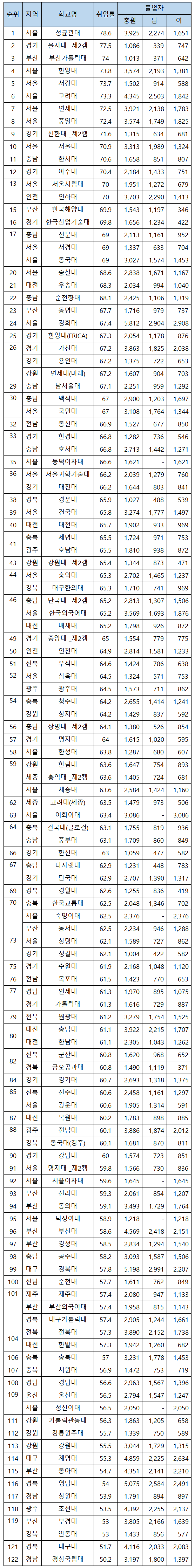 1위 성균관대, 2위 을지대, 3위 부산가톨릭대