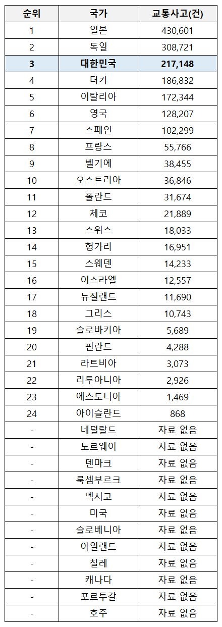 교통사고 건수 순위