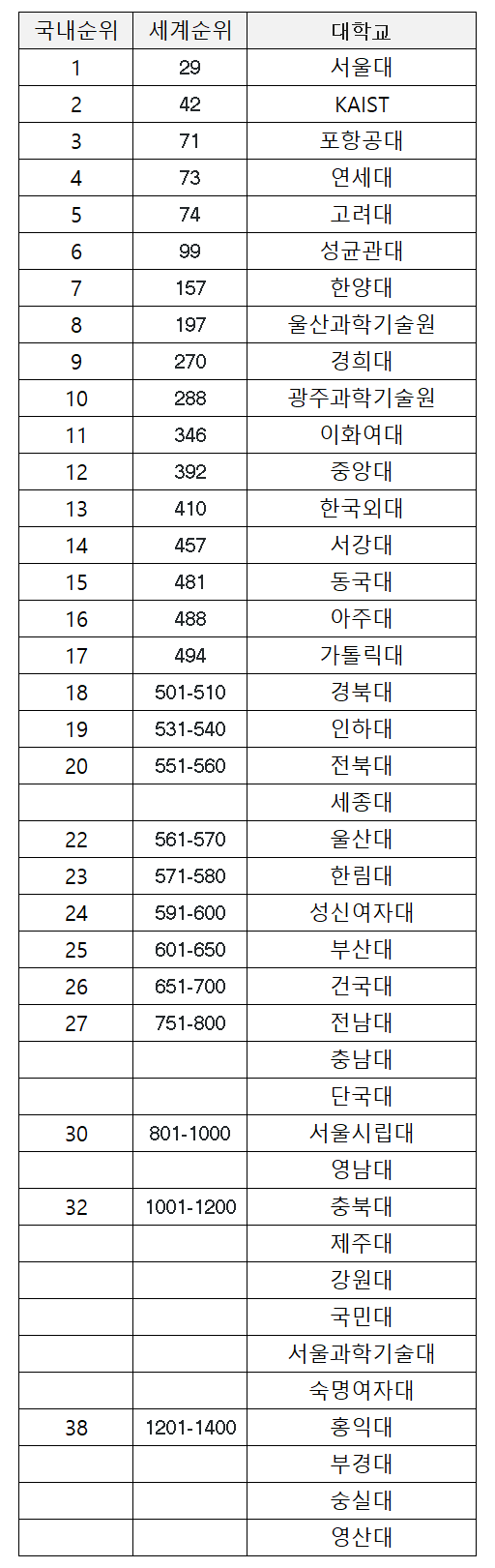 | 2022 ARWU 국내 대학 순위 (한국 대학 순위) (0) | 2022.10.29 |