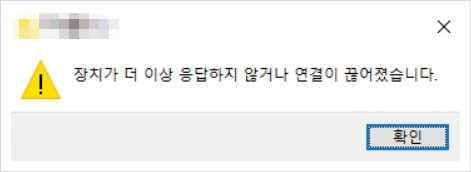 장치가 더 이상 응답하지 않거나 연결이 끊어졌습니다