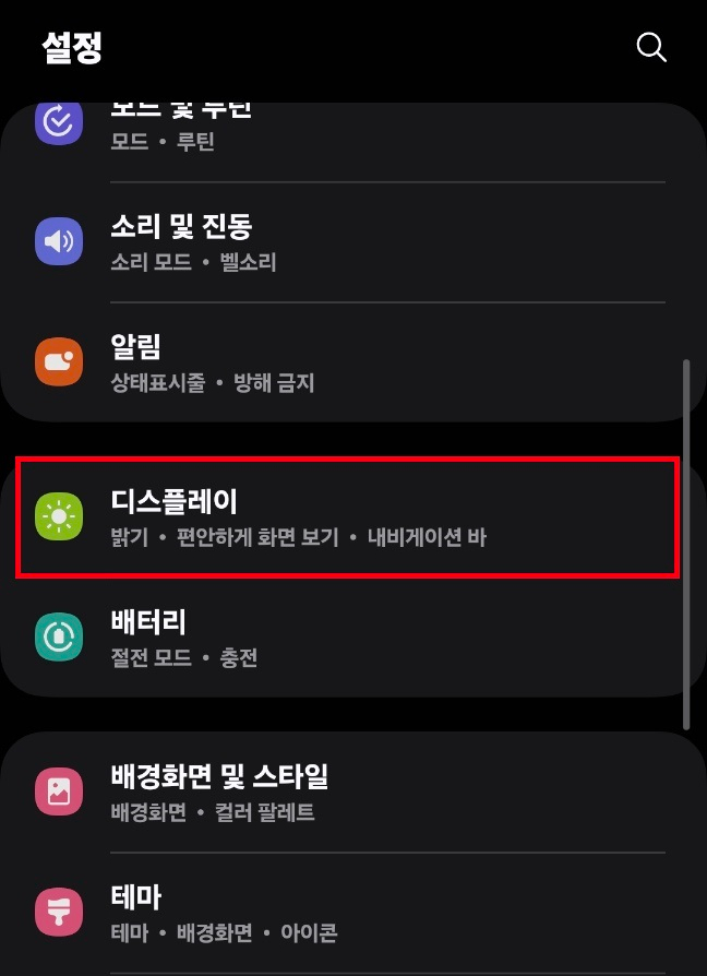 2. "디스플레이" 클릭