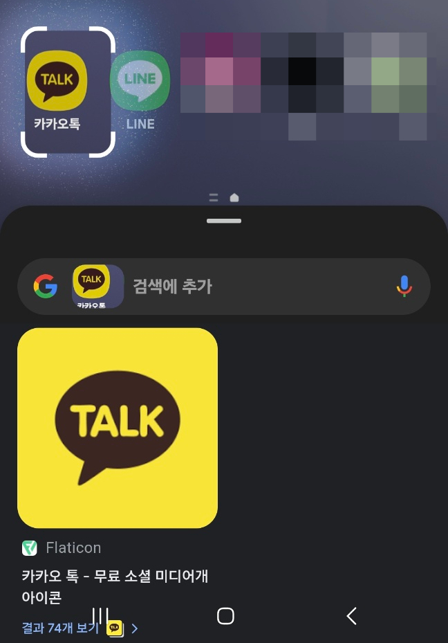 안내 토스트 메시지 처럼 원을 그리거나 터치하면 됩니다. 카톡 아이콘을 클릭 해봤습니다.