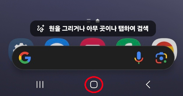 홈버튼을 길게 누르시면 서클 투 서치가 시작 됩니다.