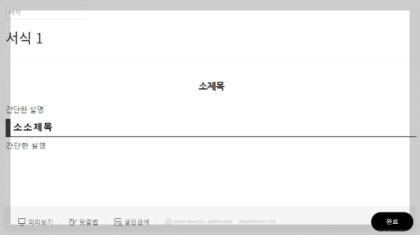작성한 티스토리 서식을 사용하는 것은 아주 간단합니다. 에디터 상단에 "..." 클릭 서식 누르고, 원하는 서식 더블 클릭 하면 됩니다.