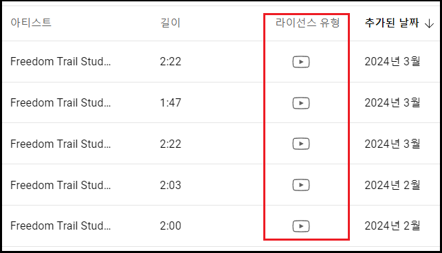 - 오디오 보관함 리스트에서 라이선스 유형을 꼭 확인 하셔야 합니다.