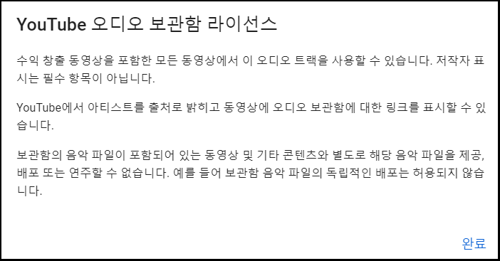 " YouTube 오디오 보관함 라이선스