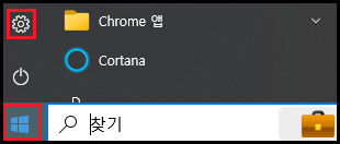 윈도우 왼쪽 하단에 "윈도우 모양 - 톱니바퀴" 클릭