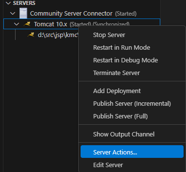 server 탭 오른쪽에 마우스를 가져가면 버튼이 나옵니다.