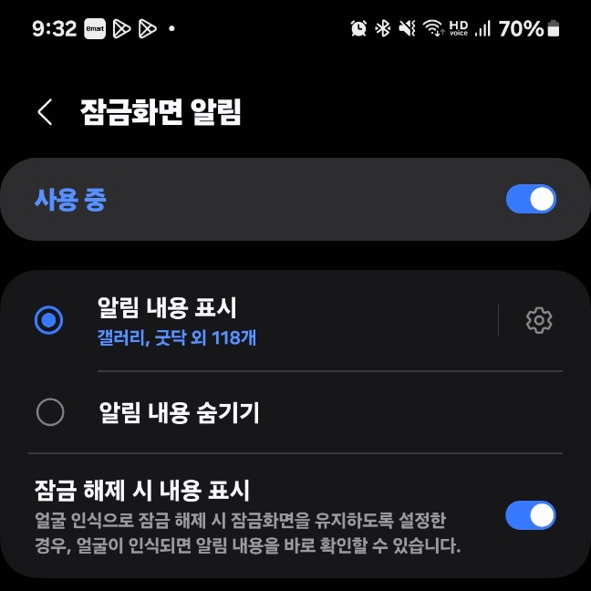 잠금화면 알림 설정